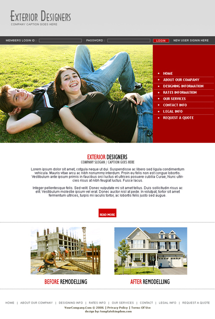 Professional quality, Adobe Dreamweaver and Photoshop designed Exterior design templates that can be easily customized to reflect your company's branding. These templates are ideal for exterior design, home improvement and renovation services, landscaping and house diy.